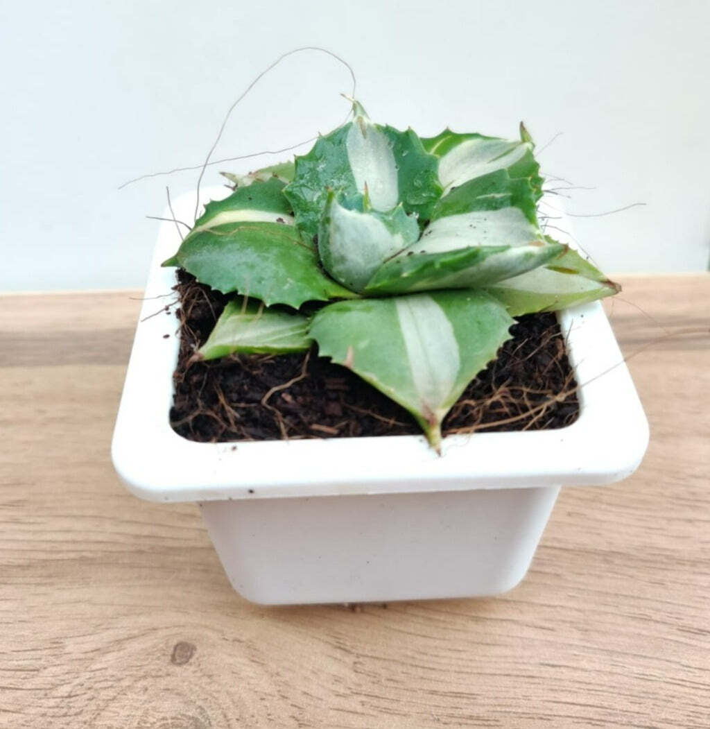 Agave Tropicanais a tiny succulent boasting green and white leaves. Its easy-to-grow nature makes it an ideal succulent for beginners.