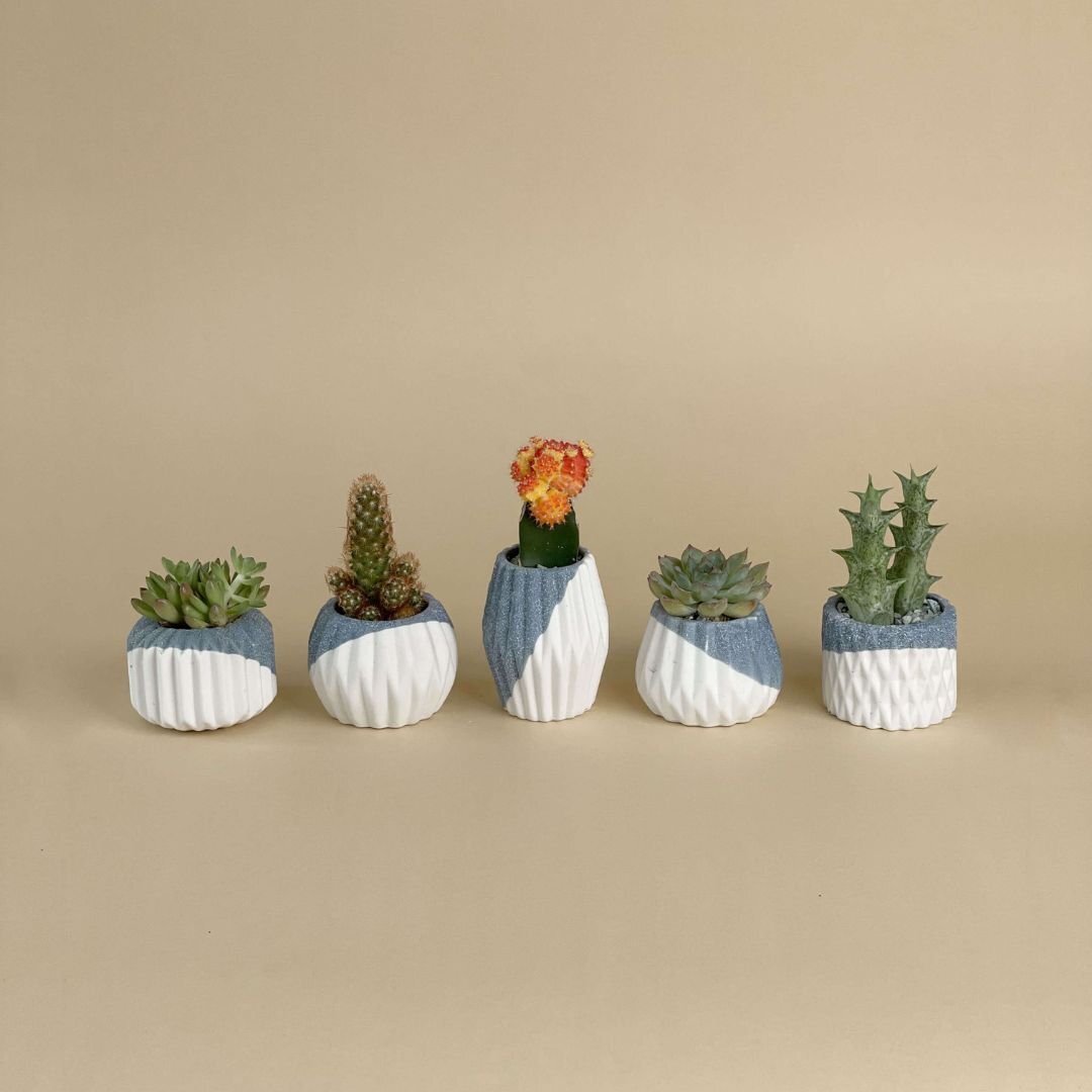 Each set comes with 4assorted geometric ceramic pots, each housing a different succulent plant. Succulents are easy to care for and require very little water, making them the perfect plant for busy urbanites or anyone who doesn’t have a green thumb!